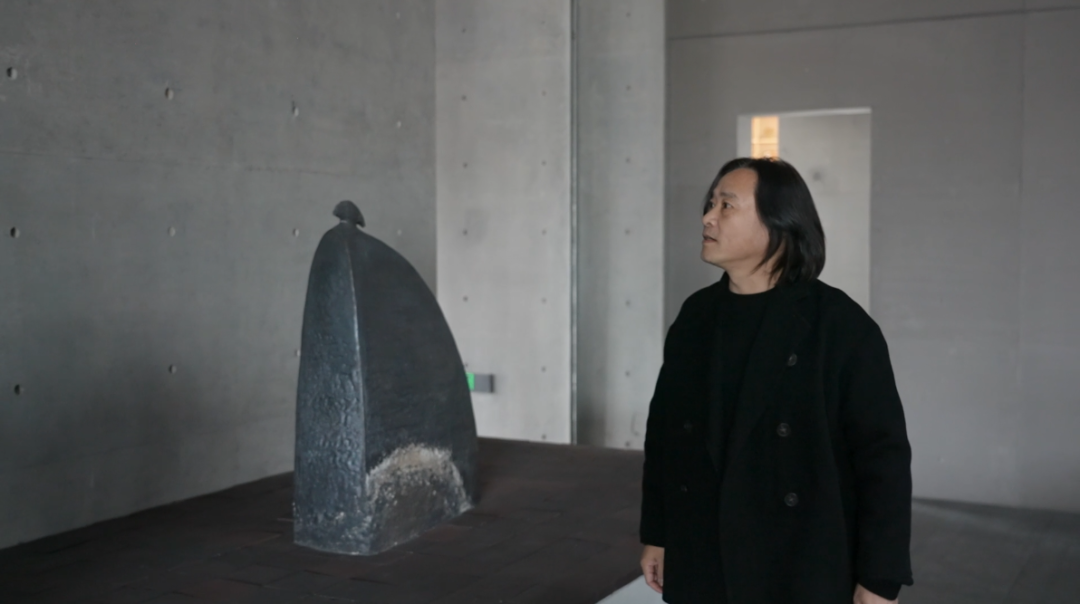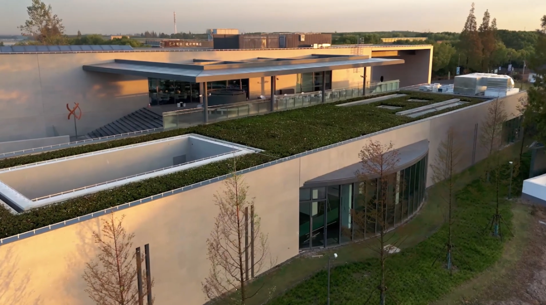 鏡頭追隨著他的講述緩緩移動,一幅田野間的藝術尋訪畫卷悄然鋪展。首站,慕容引刀來到馬陸鎮(zhèn)大裕村。開闊田野中央,清水混凝土打造的嘉源海美術館靜靜佇立,線條簡潔柔和,宛如一本攤開在蒼穹下的巨型立體繪本。他分享道:“館內展覽定期更新,但窗外的景致永遠是幅流動的畫——稻田綠了又黃,云朵聚了又散?!痹谶@里,藝術不再是遙不可及的展品,而是推門即遇的風、光與四季流轉。