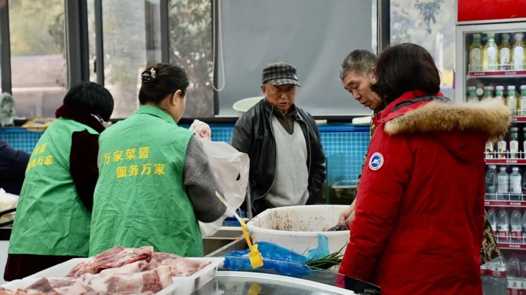 菜場(chǎng)內(nèi)部通道寬敞,地面全部做了防滑處理,還專門設(shè)置了休息區(qū)和免費(fèi)飲水點(diǎn)??紤]到社區(qū)老年居民較多,菜場(chǎng)配備了放大鏡、應(yīng)急藥箱等便民物品,更推出了“助老購物”服務(wù)——工作人員會(huì)協(xié)助老人將采購的重物送到單元門口,讓老年居民買菜更省心。