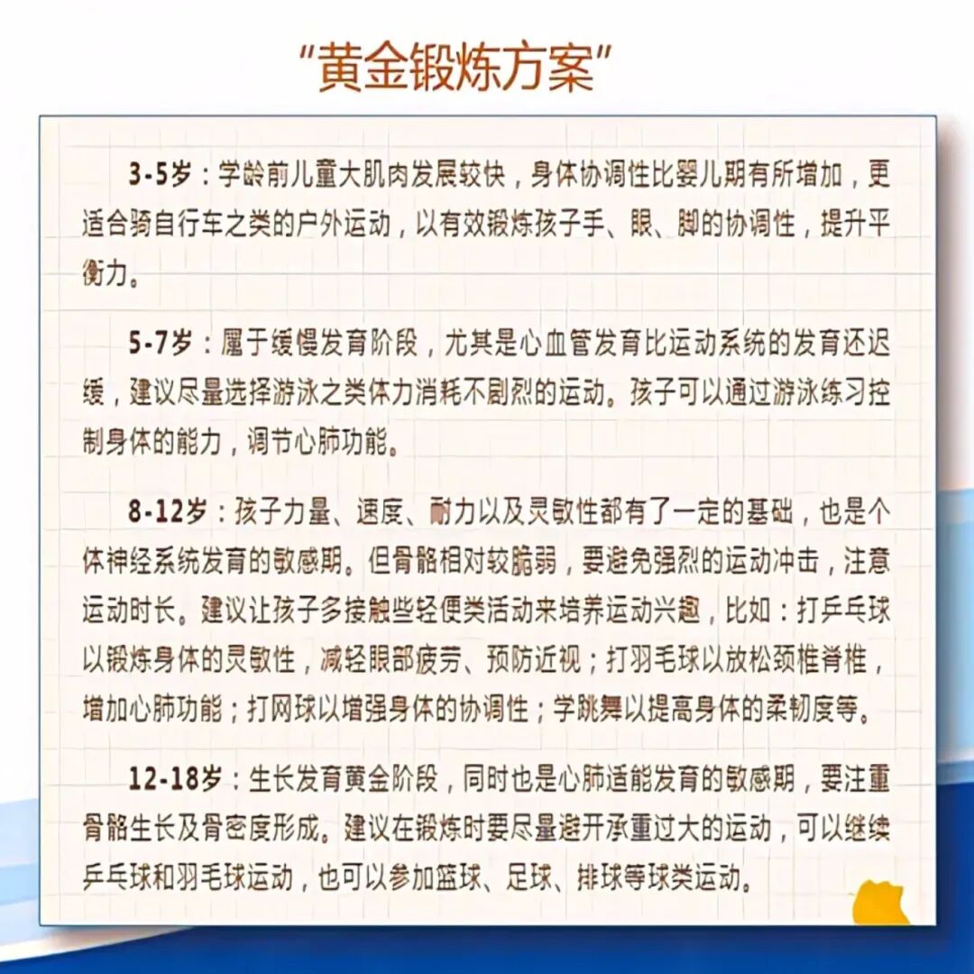 其次,不同年齡段的孩子興趣點(diǎn)不同,建議家長(zhǎng)結(jié)合孩子的年齡特點(diǎn)和喜好設(shè)計(jì)運(yùn)動(dòng)項(xiàng)目。