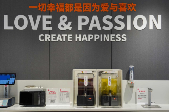 細(xì)節(jié)之處盡顯以人為本。貨架配備放大鏡方便查閱;私密商品區(qū)提供深色連卷袋保護(hù)隱私;煥新的便民服務(wù)區(qū)集合了身高血壓測(cè)量、充電寶、直飲水、微波爐、洗手護(hù)理及皮筋發(fā)夾等貼心物品。入口設(shè)寵物寄存與飲水點(diǎn),客服臺(tái)提供上門退換貨、免費(fèi)冰袋、禮品包裝、雨傘租借、愛心輪椅等十余項(xiàng)暖心服務(wù)。