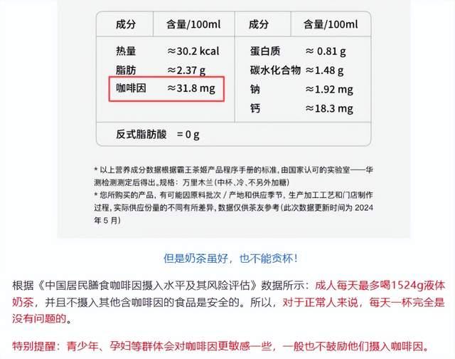 文章指出,所有真茶均含咖啡因,僅玫瑰茶、菊花茶等純花草茶不含——咖啡因是天然生物堿,茶樹通過合成咖啡因抵御蟲害,這解釋了霸王茶姬飲品中咖啡因的來源及消費者飲用后的提神感。