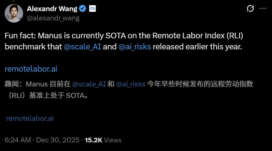 Meta首席AI官Alexandr Wang興奮地表示,Manus的加入將助力Meta打造更出色的AI產(chǎn)品!