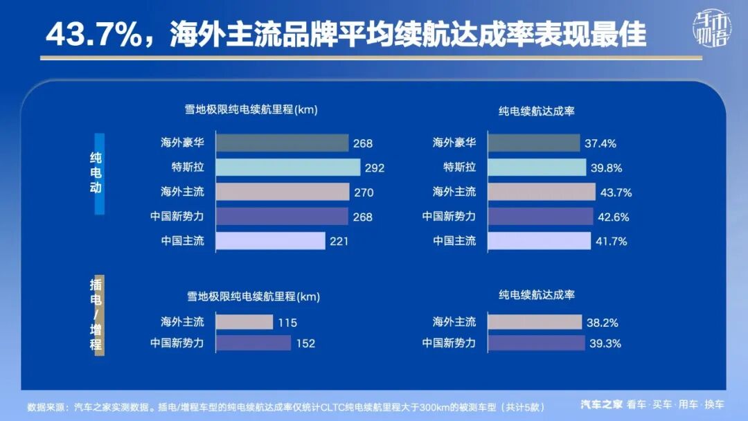 海外主流車型平均純電續(xù)航達(dá)成率領(lǐng)先