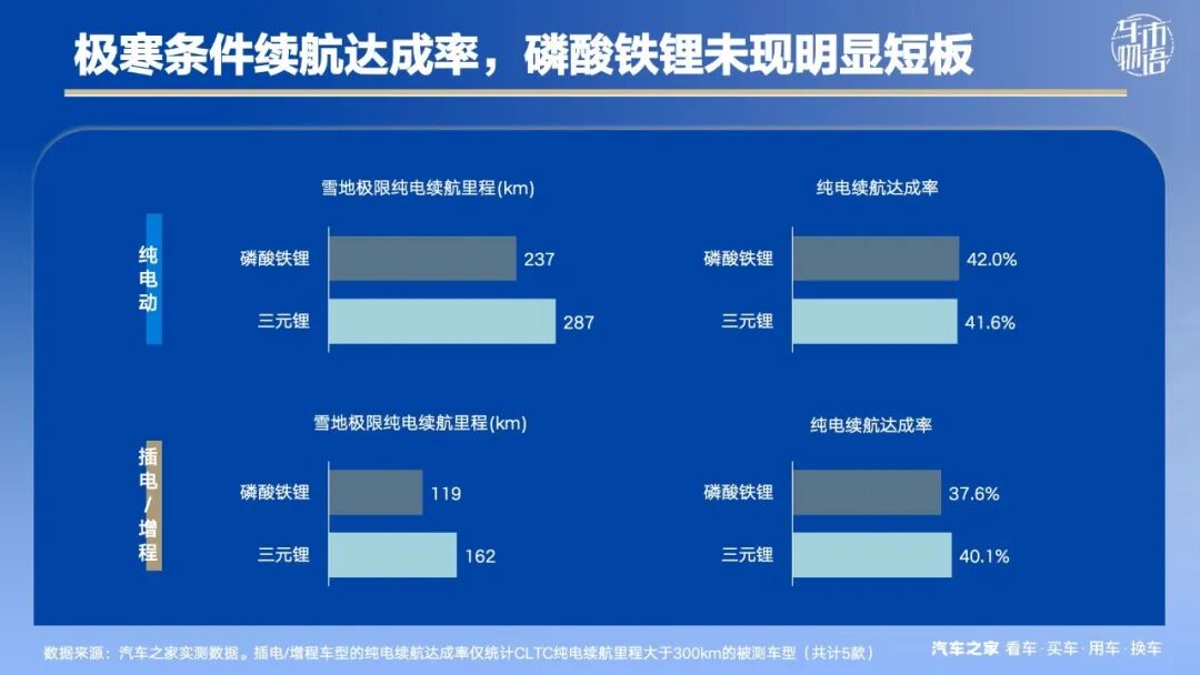 高寒地區(qū)磷酸鐵鋰電池續(xù)航無明顯劣勢: