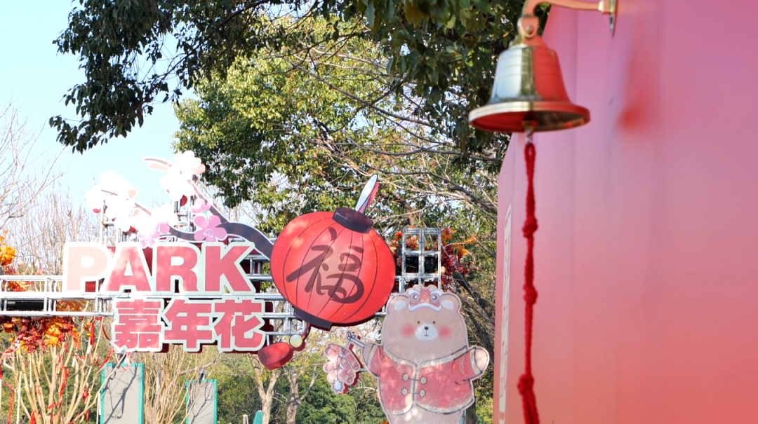 祈福鈴清脆作響,喜慶的主題背景板與立體“福”字裝置相互映襯、趣味十足……記者在公園北游客中心外看到,溫馨歡樂(lè)的節(jié)日氣息撲面而來(lái),吸引了不少游客停下腳步拍照打卡。