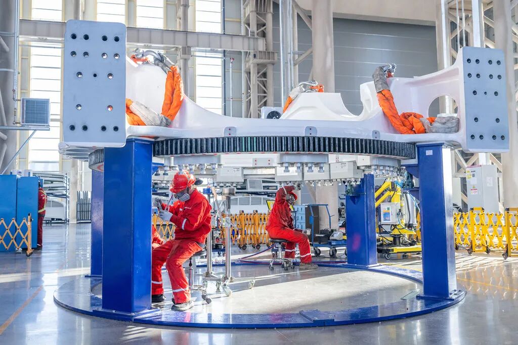 工人們正在對(duì)風(fēng)電機(jī)組的關(guān)鍵部件進(jìn)行細(xì)致裝配,以保障產(chǎn)品性能達(dá)到行業(yè)高標(biāo)準(zhǔn)。