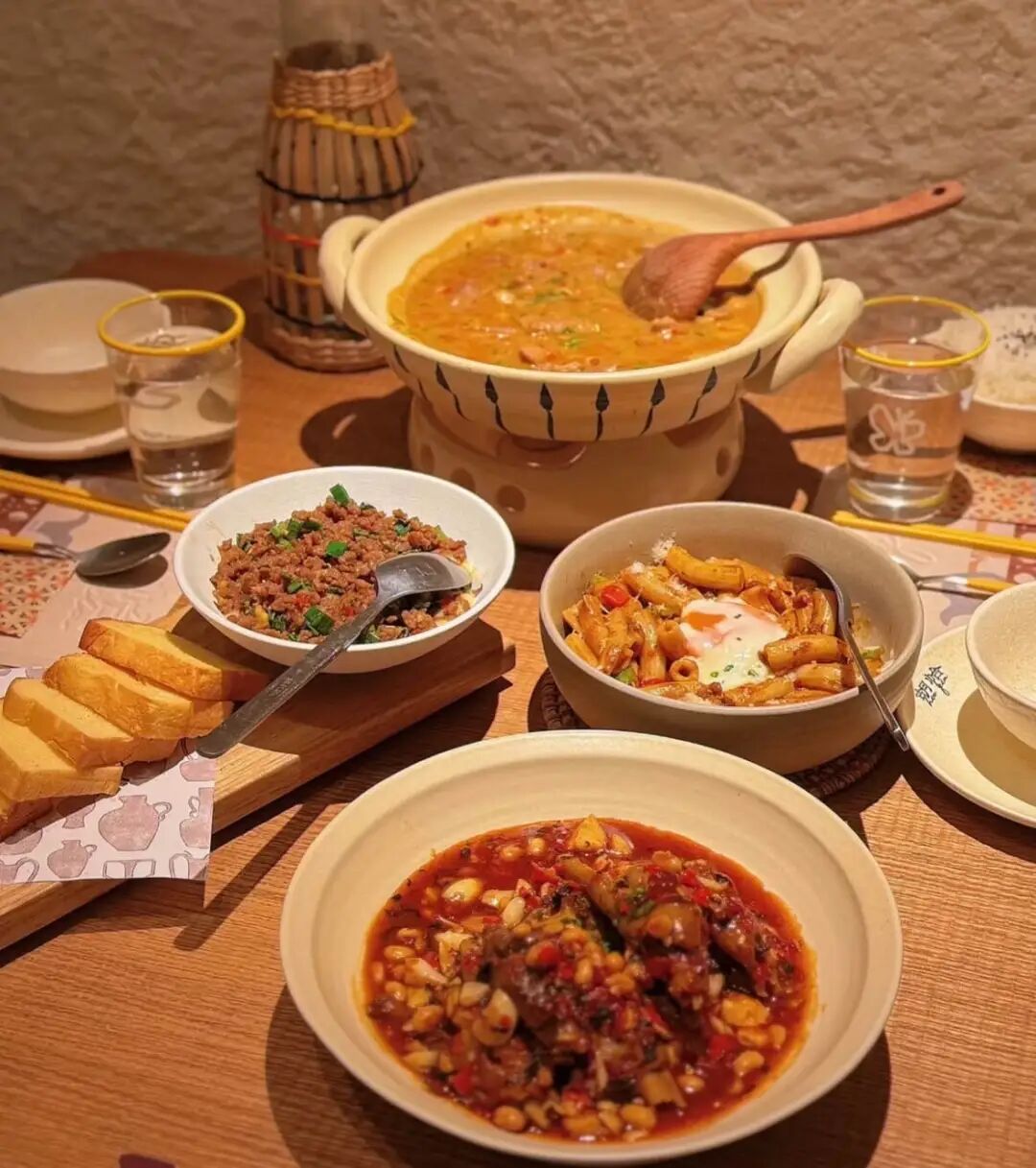 與傳統(tǒng)小炒店的市井感不同,胡恰注重空間質(zhì)感的營(yíng)造,將景德鎮(zhèn)陶瓷文化與當(dāng)下流行的山野風(fēng)相融合,確保環(huán)境“適合拍照”,自帶傳播屬性。