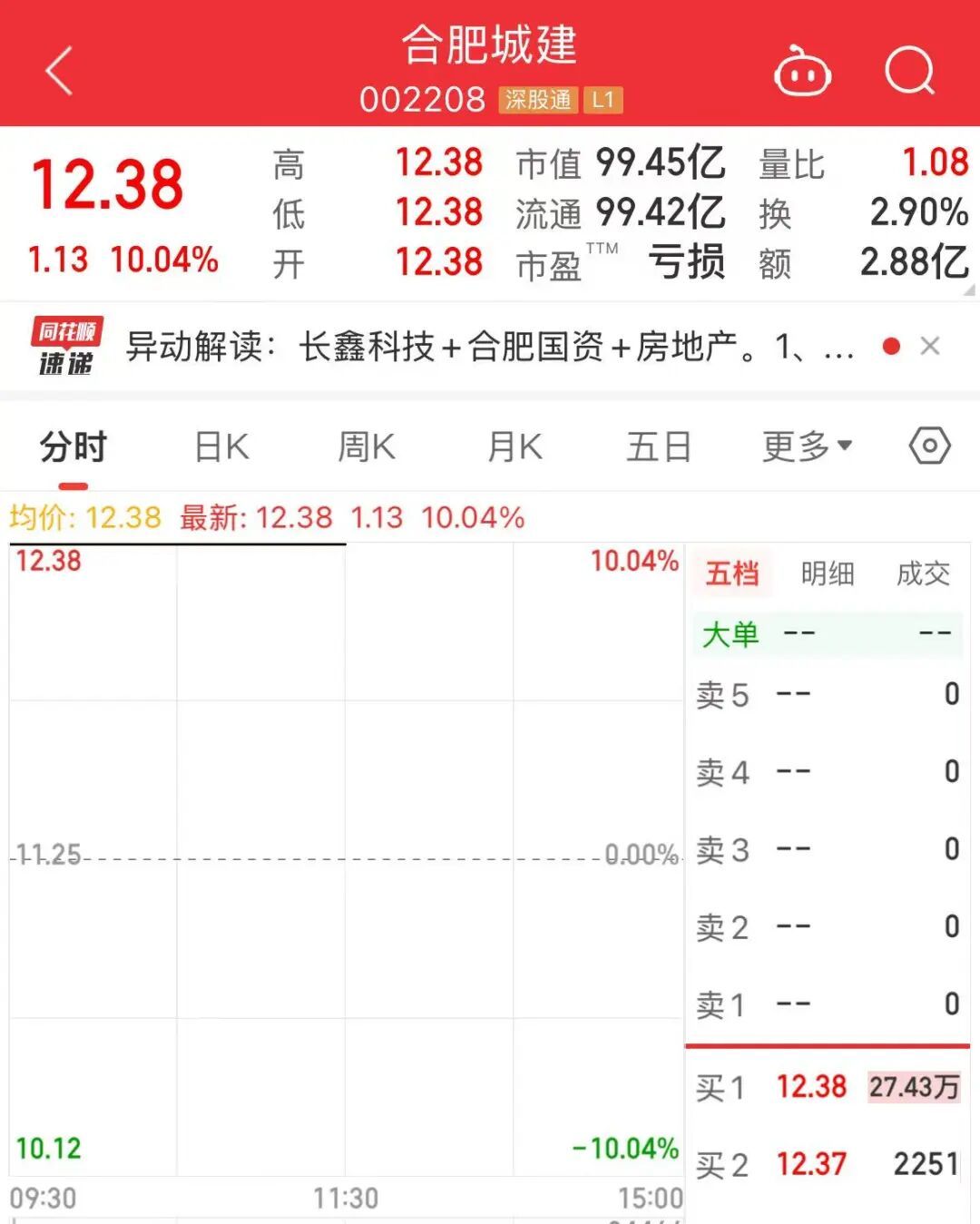 受這一消息影響,長鑫科技概念股在今日上午表現(xiàn)活躍,合肥城建“一字”漲停,上峰水泥同樣封死漲停板,深科技、雅克科技等個股也紛紛上漲。