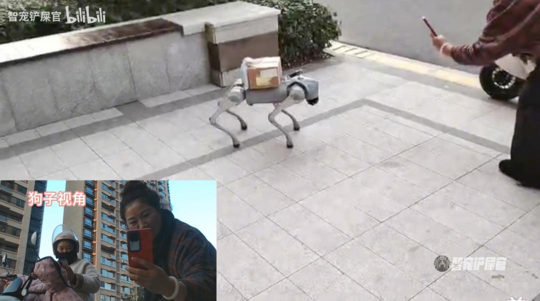 除了遛狗,有博主讓3萬塊買的機器狗取快遞,卻卡殼在“按不了電梯鍵”。沒辦法,又給機器狗綁麥克風,讓它喊小學生幫忙送回家。