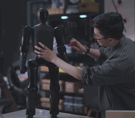 Q1采用模塊化硬件設(shè)計(jì),支持頭部等部位的整體更換,搭配零門檻的動(dòng)作編排功能。它就像一個(gè)等待接收指令的AI,能在物理世界中完成諸多任務(wù)。