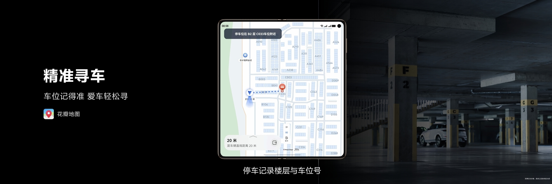 除“戶外探索”模式外,花瓣地圖針對日常出行常見困擾迭代實用功能,讓行程更高效舒心。華為Mate 80系列與Mate X7折疊屏全新上線“精準尋車”功能,實現(xiàn)停車自動記錄、跨樓層精準定位尋車,輕松化解“停車易,找車難”的尷尬。同時為華為Mate X7折疊屏量身定制「分屏導(dǎo)航」模式,充分發(fā)揮大屏優(yōu)勢,支持導(dǎo)航與其他應(yīng)用并行操作,在小紅書刷到網(wǎng)紅景點時,無需復(fù)制地址、切換地圖,直接分屏喚起小藝,路線規(guī)劃實時同步花瓣地圖,帶來流暢便捷的多任務(wù)出行體驗。