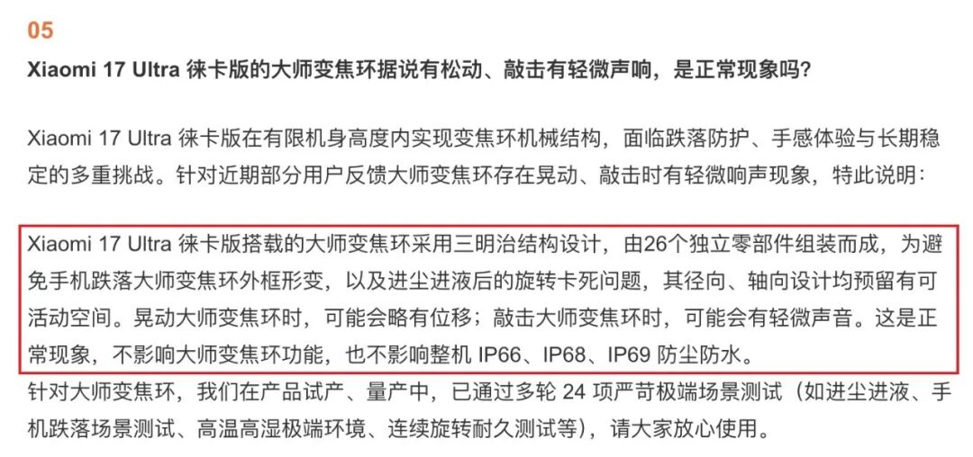 最早發(fā)現(xiàn)小米17 Ultra大師變焦環(huán)松動(dòng)問題的,是一批較為硬核的數(shù)碼博主。