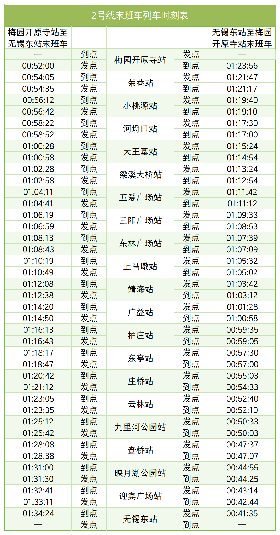 各站末班車時(shí)刻可查看下表↓