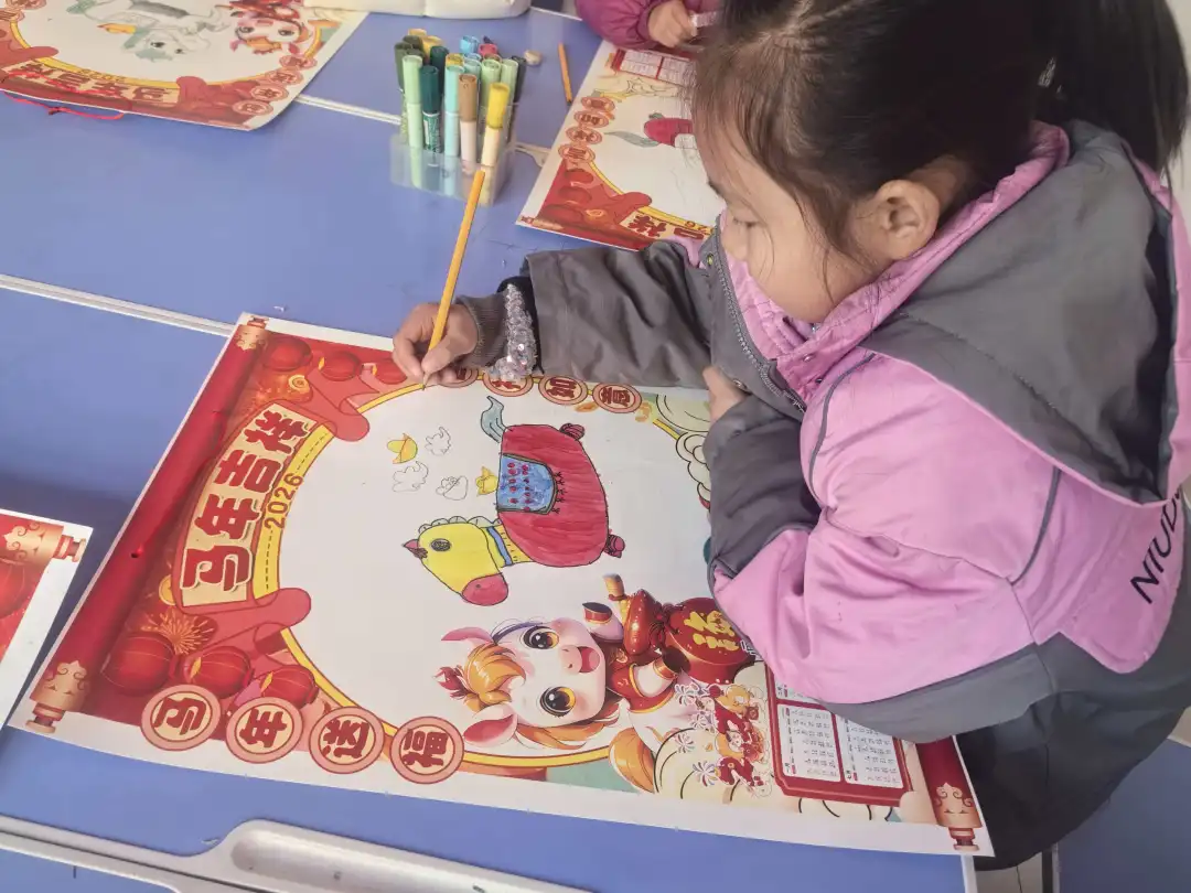 望都鎮(zhèn)育才社區(qū)農(nóng)家書屋親子手繪日歷 歡樂迎新春