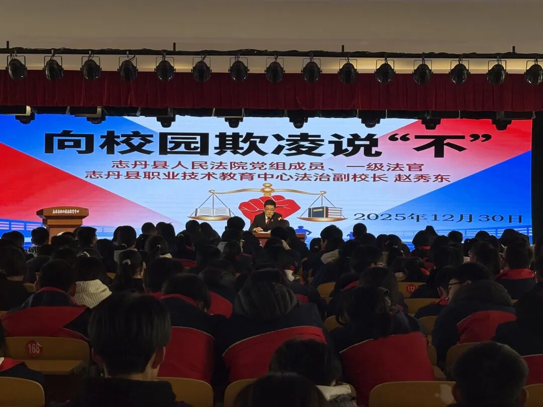 為切實(shí)強(qiáng)化青少年的法治觀念,助力預(yù)防和減少校園欺凌事件,12月30日,志丹法院的趙秀東法官走進(jìn)縣職業(yè)技術(shù)教育中心,開展了一場(chǎng)以“對(duì)校園欺凌說不”為主題的法治宣講活動(dòng)。