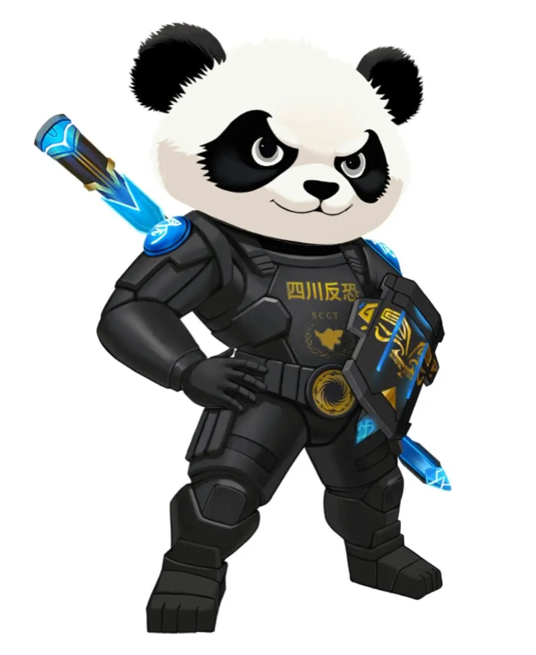 形象原型從“古蜀瑞獸”延伸到“反恐衛(wèi)士”:以熊貓為基底保留“和平使者”的親和力,同時回溯上古“貊”作為勇毅猛獸的特質(zhì),打造憨態(tài)與銳度并存的反差感。經(jīng)典的黑白皮毛不僅是熊貓標識,還暗合“陰陽和合”的傳統(tǒng)哲學,象征反恐工作剛?cè)岵?、智勇雙全。