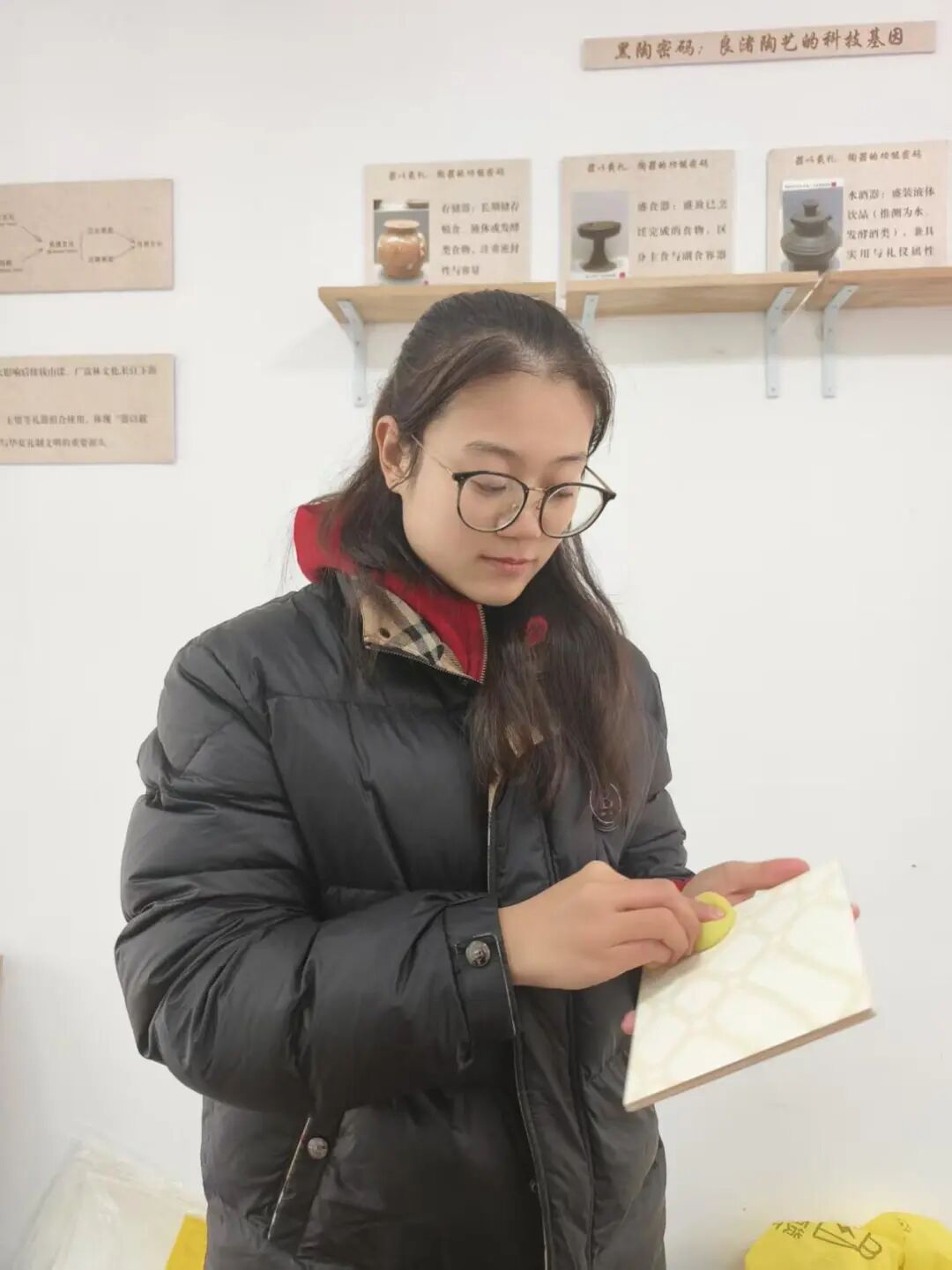 我原以為戴防燙手套就好,厚手套讓指尖像隔棉花,捏瓷片使不上勁;薄手套又燙得縮手。正慌亂時,一塊瓷片滑出,王老師穩(wěn)穩(wěn)托?。骸皠e急,慢慢來?!蔽医舆^瓷片,60℃溫潤微燙不灼人,是讓人靜心的溫度。