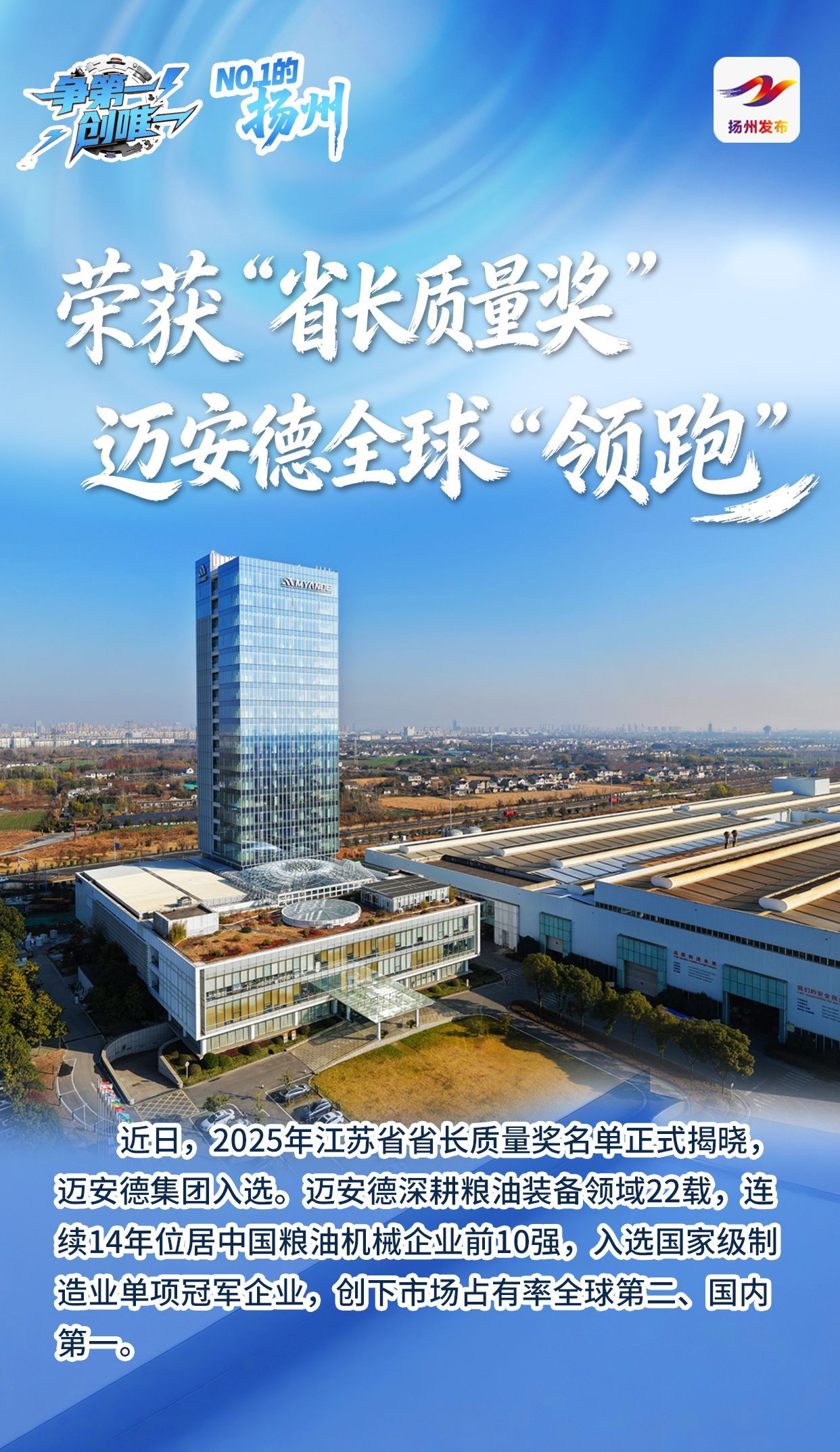 冬日湛藍(lán)的天空下,位于揚(yáng)州高新區(qū)的邁安德科創(chuàng)大廈格外挺拔。近日,在大廈即將啟用之際,2025年江蘇省省長(zhǎng)質(zhì)量獎(jiǎng)名單公布,邁安德集團(tuán)成功入選,成為揚(yáng)州第三家榮獲全省質(zhì)量領(lǐng)域最高榮譽(yù)的企業(yè)。
