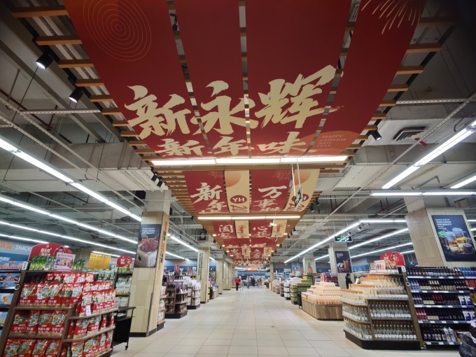 寬敞明亮的賣場通道中,降低的貨架讓商品陳列清晰可見,全新的布局與燈光打造出愜意的購物氛圍——永輝超市海寧銀泰城店以嶄新姿態(tài),迎接2026年的到來。