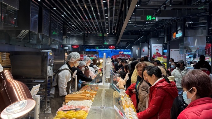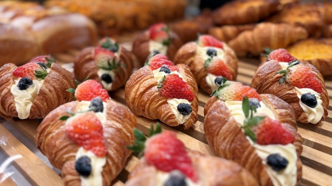 熟食烘焙區(qū)增加現(xiàn)制商品比例,椒鹽蹄髈、避風塘羅氏蝦等滿足家庭需求;25粒草莓奶油盒子蛋糕精選當季草莓,搭配戚風與輕脂奶油,口感豐富;山茶花山泉吐司采用低糖低油配方,長時低溫發(fā)酵激發(fā)麥香。