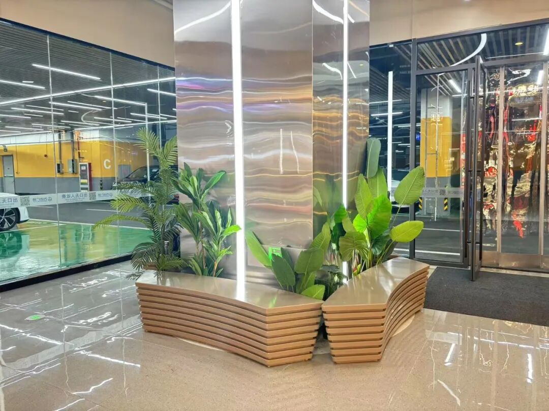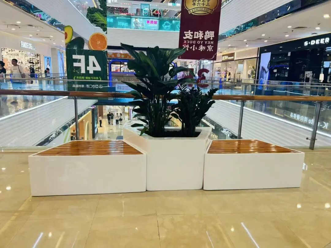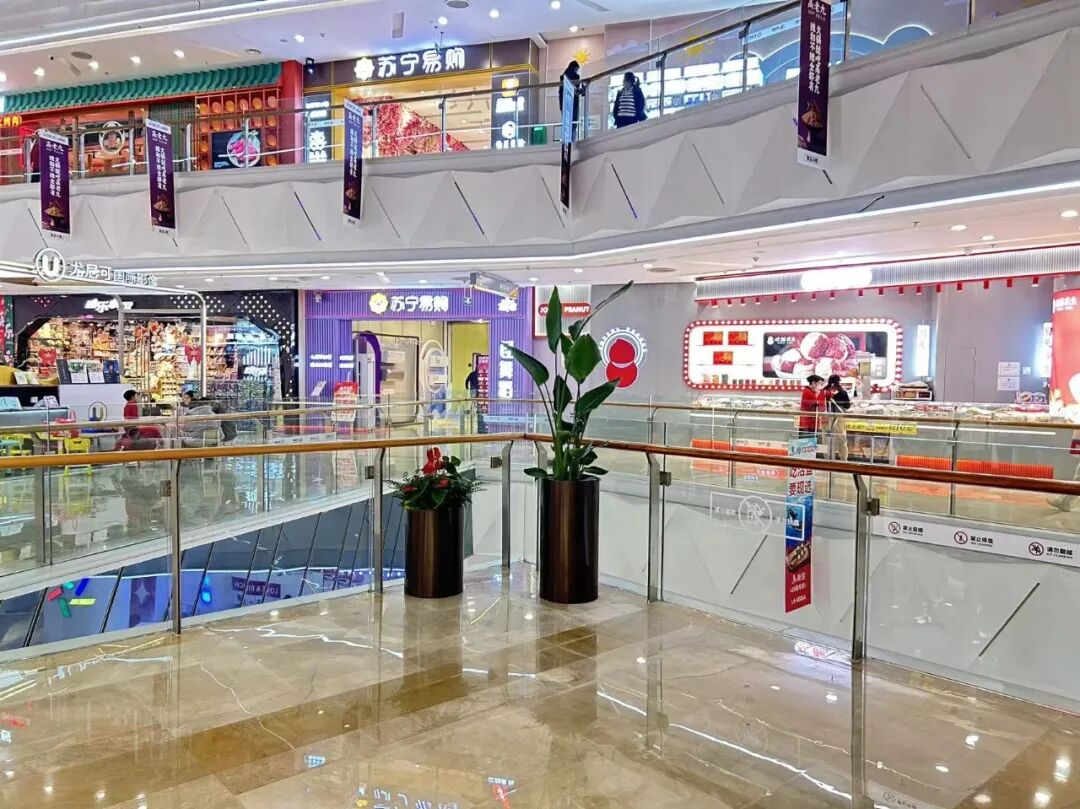 廣場(chǎng)中間通道減少了占道攤位,更顯通透,地板石材也打磨得光亮整潔;加上綠植和休閑座椅的裝飾,逛累了能隨時(shí)休息,讓人愿意在商場(chǎng)多停留一會(huì)兒。