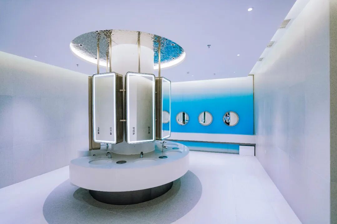 衛(wèi)生間的升級(jí)尤為明顯,新增香氛系統(tǒng)去除異味,還散發(fā)著宜人香氣;每個(gè)衛(wèi)生間都有獨(dú)立空調(diào),提供免費(fèi)紙巾,無需再掃碼看廣告取紙;部分衛(wèi)生間的設(shè)計(jì)裝修也更精致,細(xì)節(jié)感十足。