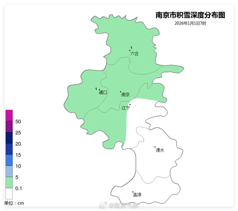 昨夜0時(shí)左右,南京自北向南由陰天轉(zhuǎn)為小雨夾雪或雪,目前全市降水以雪為主。12月31日7時(shí)至1月1日7時(shí)累計(jì)雨雪量(毫米):六合4.0、江寧1.6、浦口3.9、溧水1.8、高淳2.4;最大積雪深度:六合、浦口達(dá)1厘米,其他地區(qū)無(wú)明顯積雪。今日上午全市陰有小雨夾雪或小雪并逐漸停止,下午到夜間轉(zhuǎn)多云。