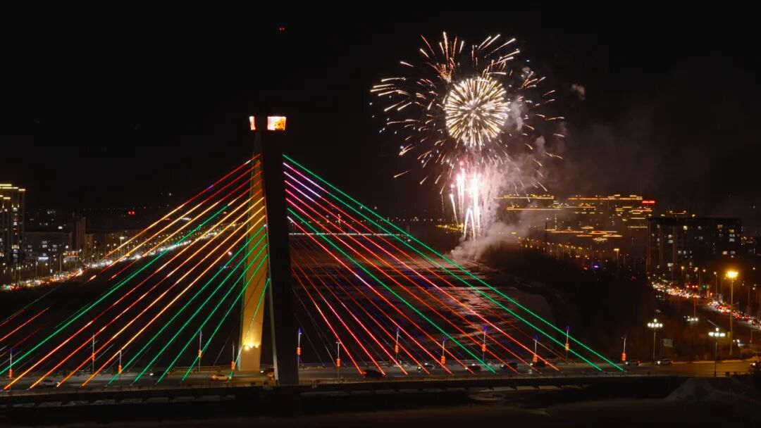 1月1日晚,霍林郭勒市河東新區(qū)浮橋北沿岸的開闊地帶人頭攢動,眾多市民與游客相聚于此,在璀璨燈光與絢麗煙花的映襯下,一同迎接新年的到來?,F(xiàn)場四組音響同步播放歡快樂曲,以聲光交融的視聽盛宴,帶領全城民眾共度喜慶祥和的元旦佳節(jié)。