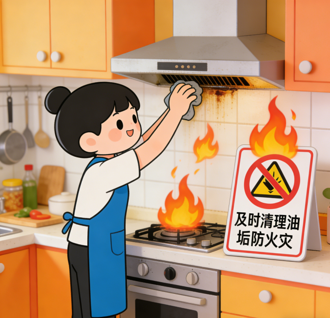 燒菜做飯時不要隨意離開廚房,要養(yǎng)成隨手關(guān)火的習(xí)慣。同時,及時清理灶臺附近的可燃物,不在抽油煙機(jī)和灶臺之間張貼易燃的塑料布、紙張等物品。定期清洗抽油煙機(jī)的油垢,防止做飯時火苗引燃油垢引發(fā)火災(zāi)。
