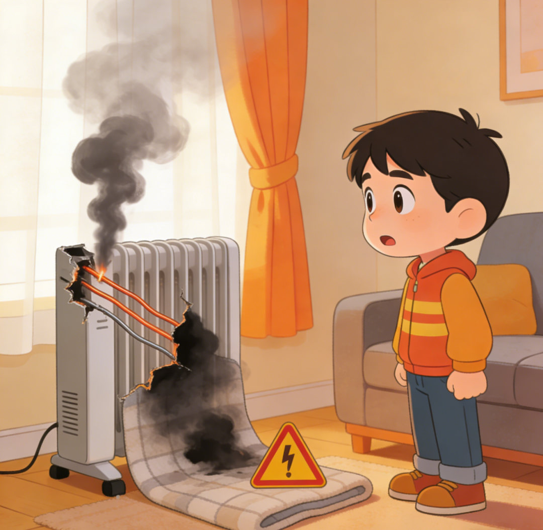 使用電暖氣、小太陽等取暖電器時,要與可燃物保持安全距離,切勿在上面烘烤衣物。電熱毯避免反復(fù)彎折,否則會導(dǎo)致電熱絲斷裂,進(jìn)而引發(fā)短路失火。