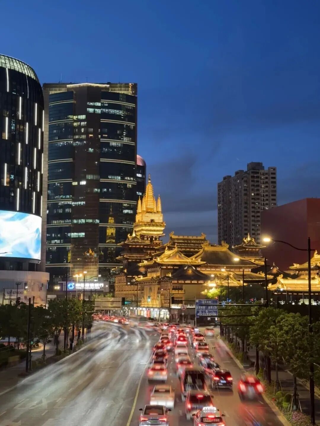 當(dāng)千年古剎的琉璃金頂與延安高架的川流車軌同框,無論玩延時(shí)攝影,還是長曝光拍車軌,古典與現(xiàn)代都能在此碰撞出令人屏息的視覺奇觀。