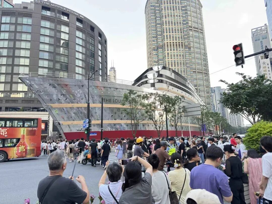 在王家沙吃完早餐,過個(gè)馬路就到了興業(yè)太古匯。位于興業(yè)太古匯吳江路路口的全球唯一LV“巨輪”自亮相以來,迅速成為南京西路商圈的“流量引擎”,巨型藝術(shù)裝置極具視覺沖擊力,是不容錯(cuò)過的網(wǎng)紅拍照熱門點(diǎn)位。