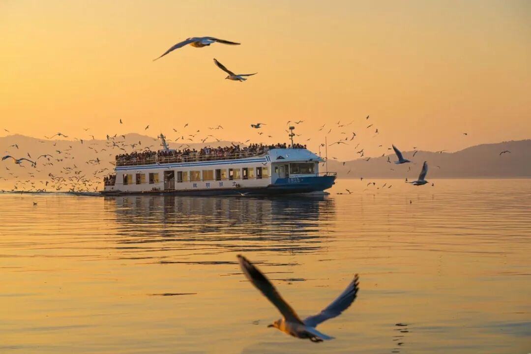 小貼士:上船后建議直奔船尾或二層甲板,視野開闊出片率高;湖面風大,記得裹好圍巾、戴好帽子保暖防風!