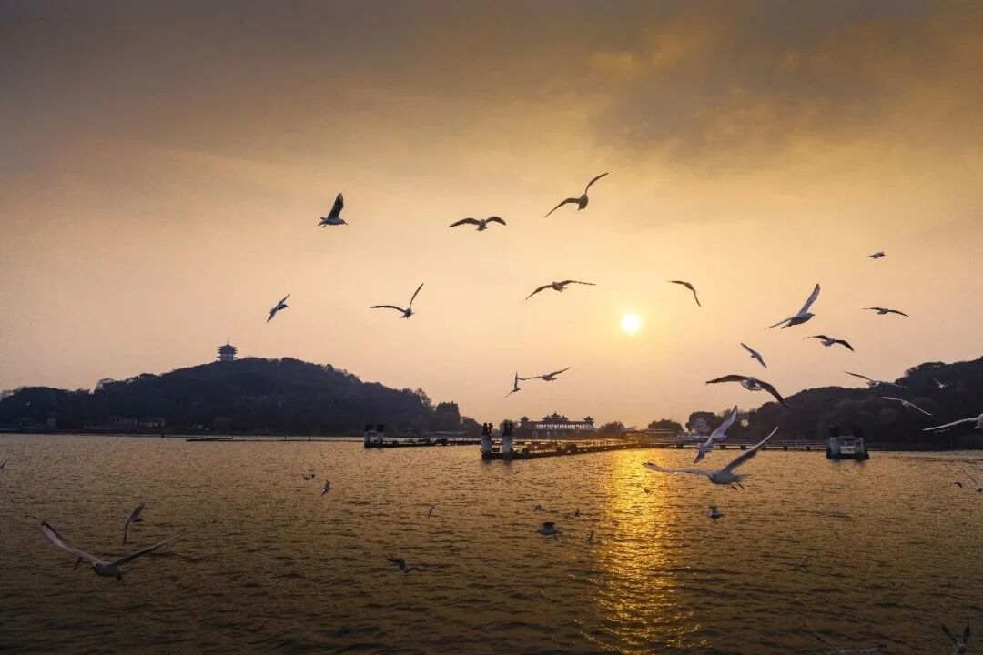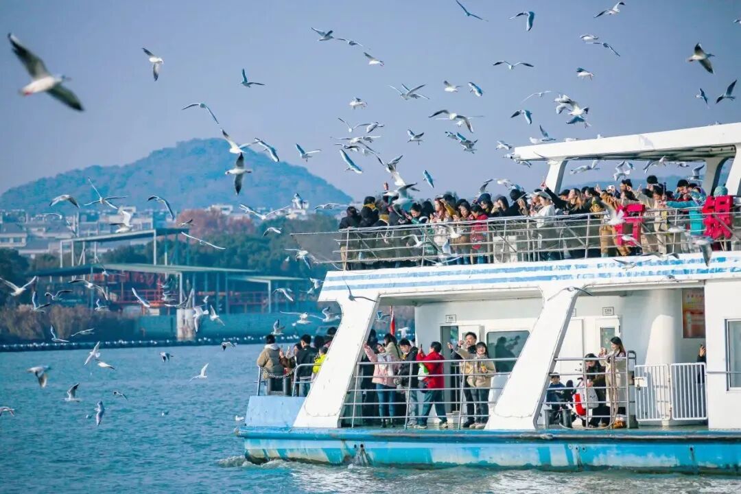 無錫冬日的浪漫,一半來自西伯利亞飛來的紅嘴鷗??此鼈兂扇罕P旋、俯身啄食,治愈感拉滿。推薦15:00—17:00黃金時段登船,日落時分湖面會泛起溫柔“橘子?!保庥?、飛鳥、波浪融為一體,隨手一拍都是電影畫面。