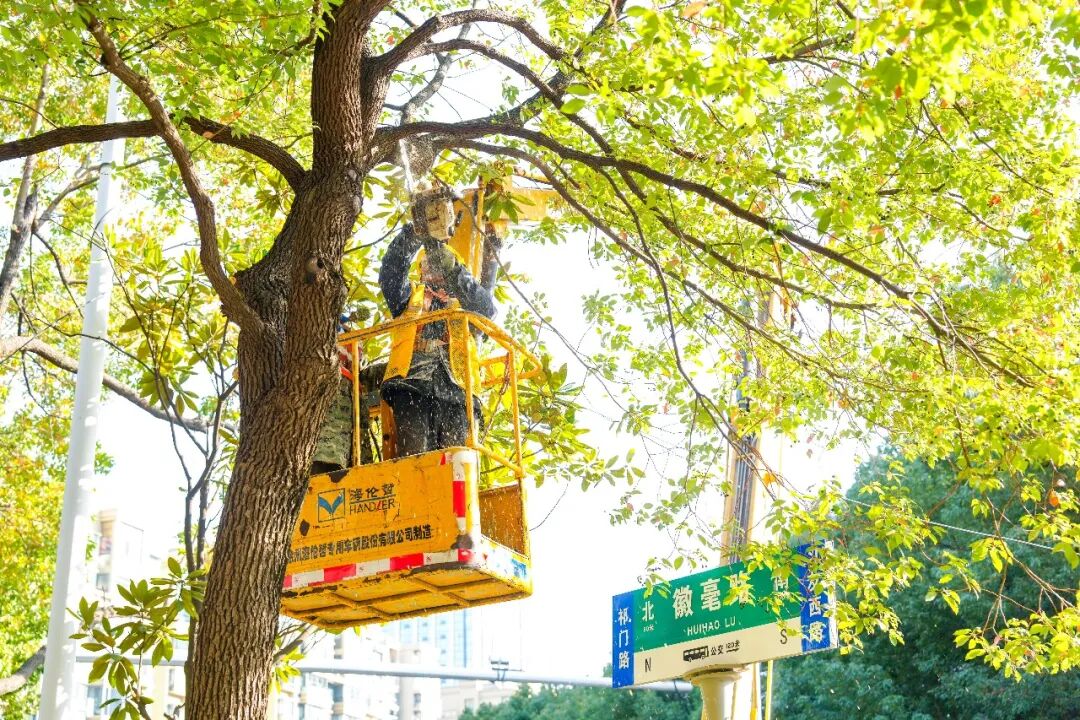 作業(yè)現(xiàn)場,各部門分工明確、協(xié)同順暢。市政園林服務中心的工人負責提供專業(yè)修剪技術支持,按照方案對過密枝、遮光枝進行細致修剪;蜀山交警大隊民警則在現(xiàn)場維護交通秩序,疏導過往車輛與行人,保障修剪作業(yè)安全有序進行。這種聯(lián)動模式不僅提升了作業(yè)效率,還最大限度減少了對市民日常出行的干擾。