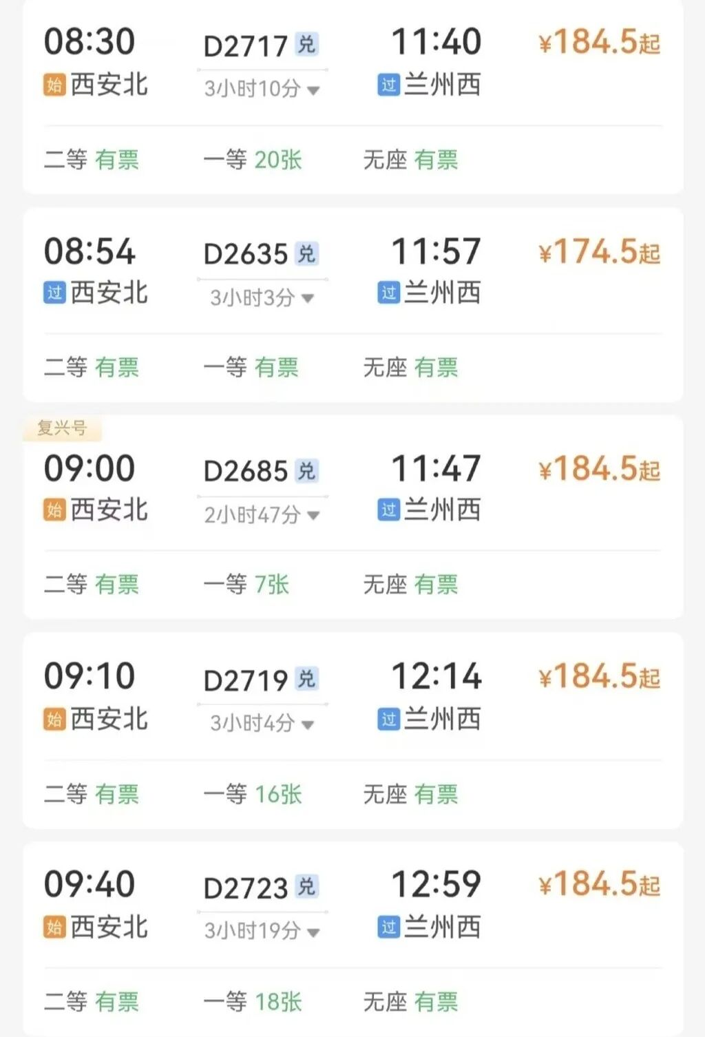 西安→蘭州