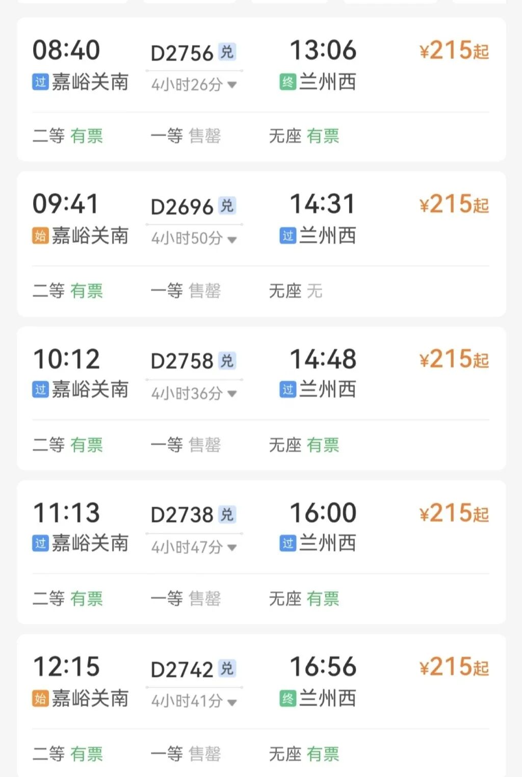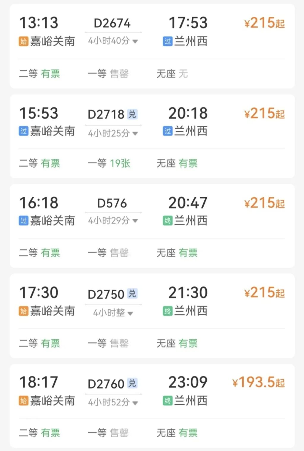 嘉峪關(guān)→蘭州