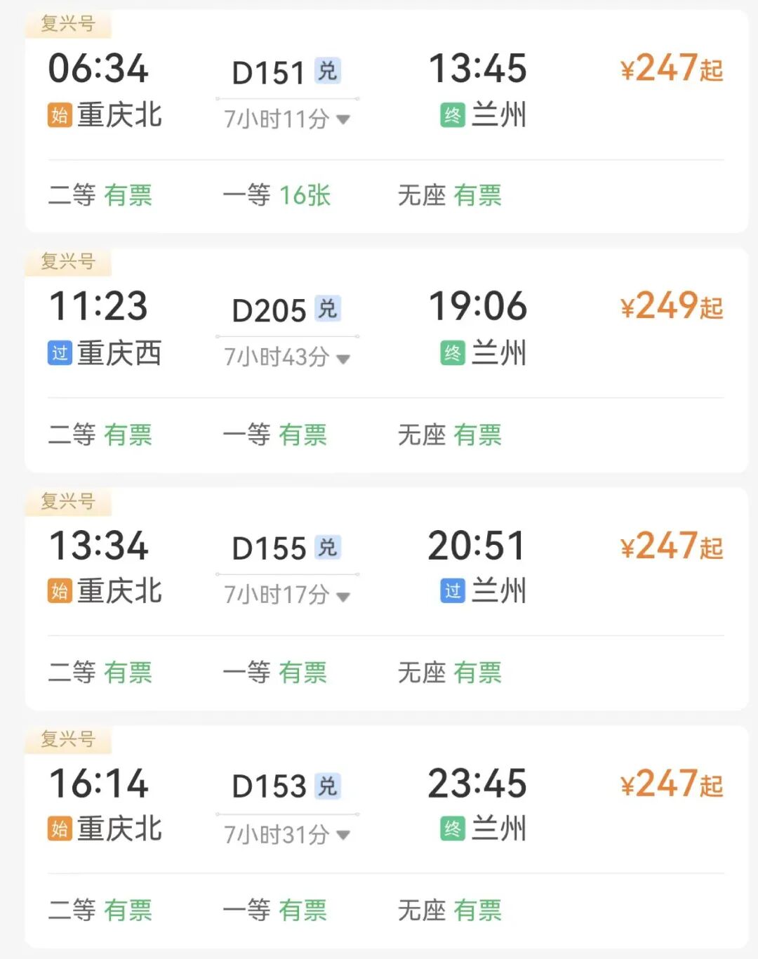 重慶→蘭州
