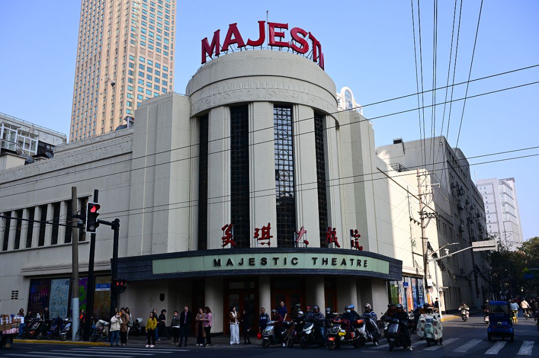 綠楊邨對(duì)面便是美琪大戲院,1941年建成,是上海首批近代優(yōu)秀文物保護(hù)建筑,集音樂劇、話劇、戲曲等表演形式,兼具電影放映功能,見證了眾多上海文化事件與藝術(shù)現(xiàn)場(chǎng)。