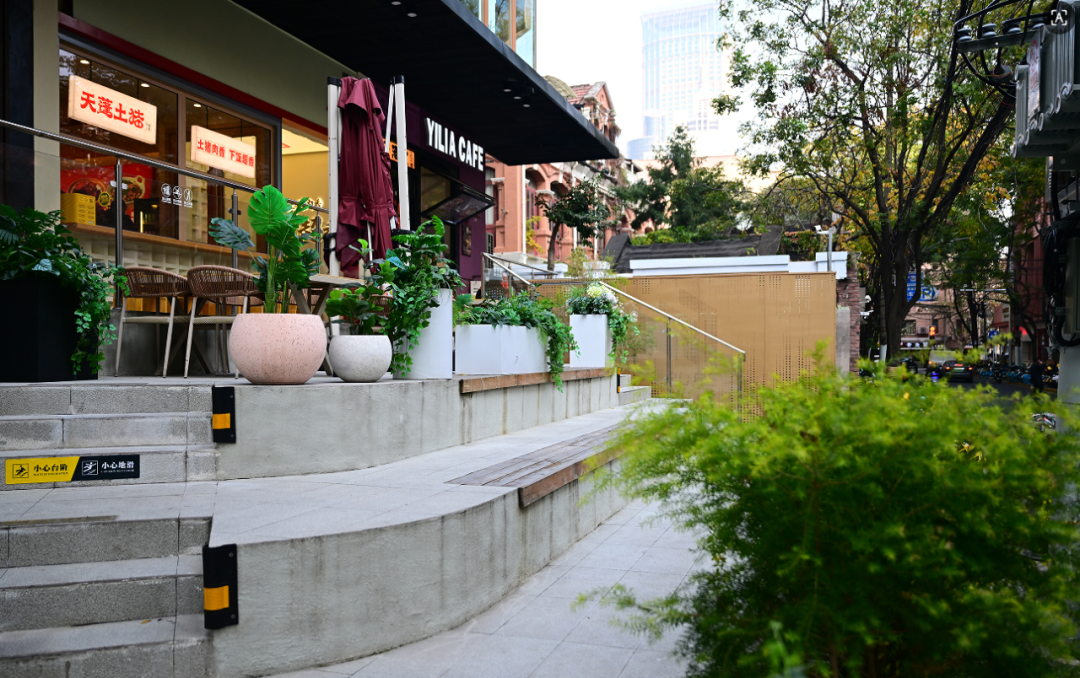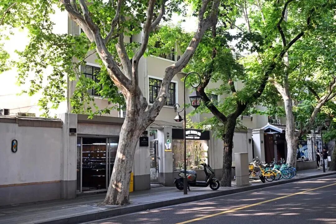 沿南陽(yáng)路漫步至奉賢路,蔥蘢喬木下老洋房與網(wǎng)紅小店相映,遍布風(fēng)格各異的餐飲店,中外混搭。