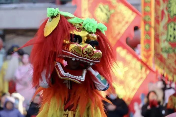 激昂的鼓點搭配清脆的镲聲,一支氣勢磅礴的舞獅隊伍首先亮相。兩頭紅黃相間的雄獅昂首挺胸,步伐穩(wěn)健,動作剛勁有力,騰躍撲閃間盡顯豪邁威武。高臺翻滾、疊羅漢托舉、雙獅對舞等一系列高難度動作接連呈現(xiàn),引得觀眾紛紛叫好,現(xiàn)場掌聲不斷。