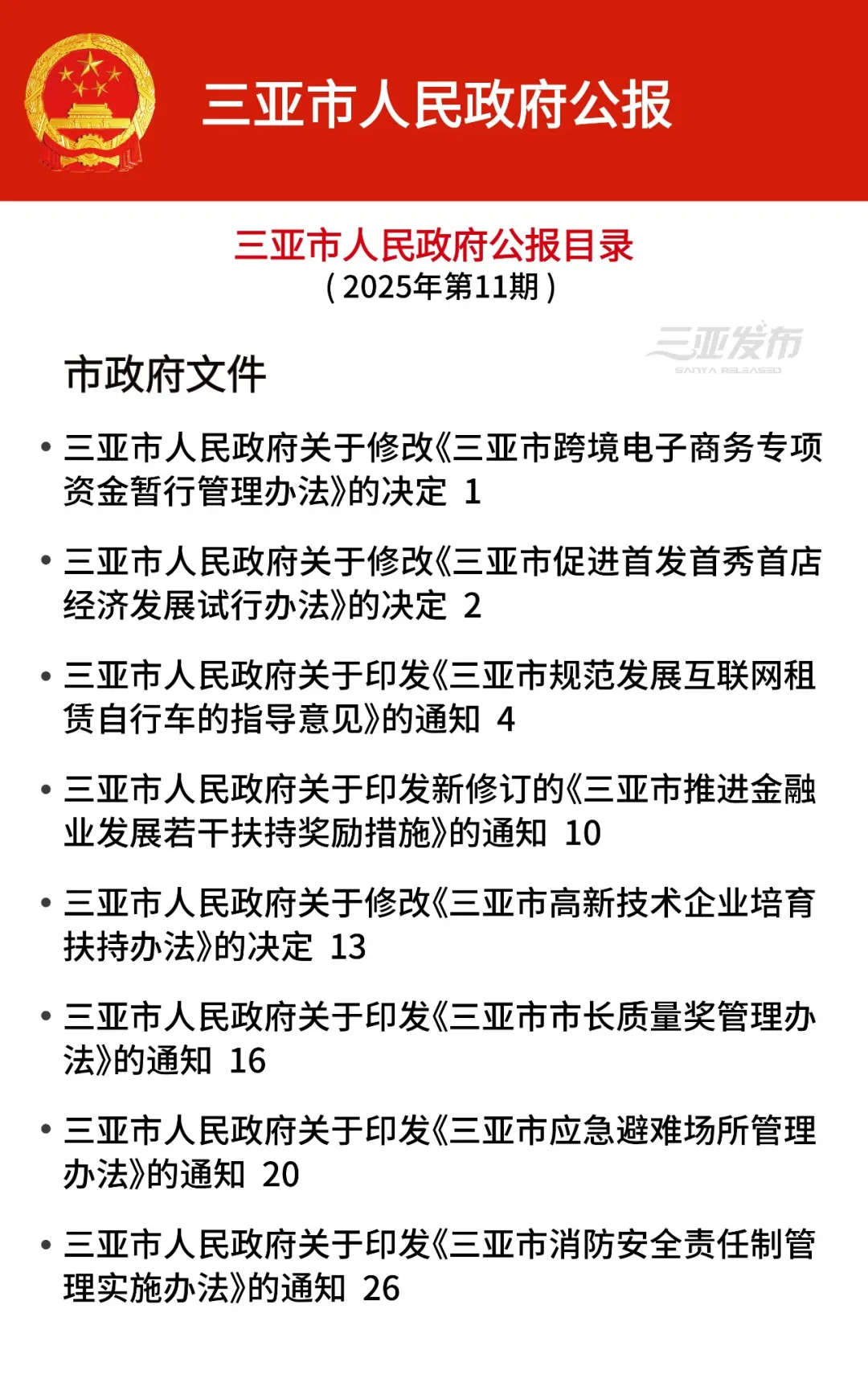 原標(biāo)題:《三亞市人民政府公報2025年第11期》