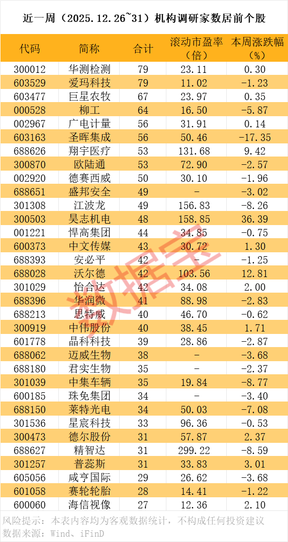 近一周,機構(gòu)調(diào)研個股數(shù)量達200多只,其中華測檢測吸引的調(diào)研機構(gòu)數(shù)量最多。