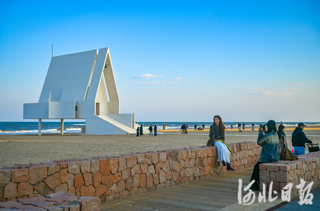 秦皇島市北戴河新區(qū)阿那亞社區(qū),游客在與阿那亞禮堂合影。河北日報記者趙杰攝