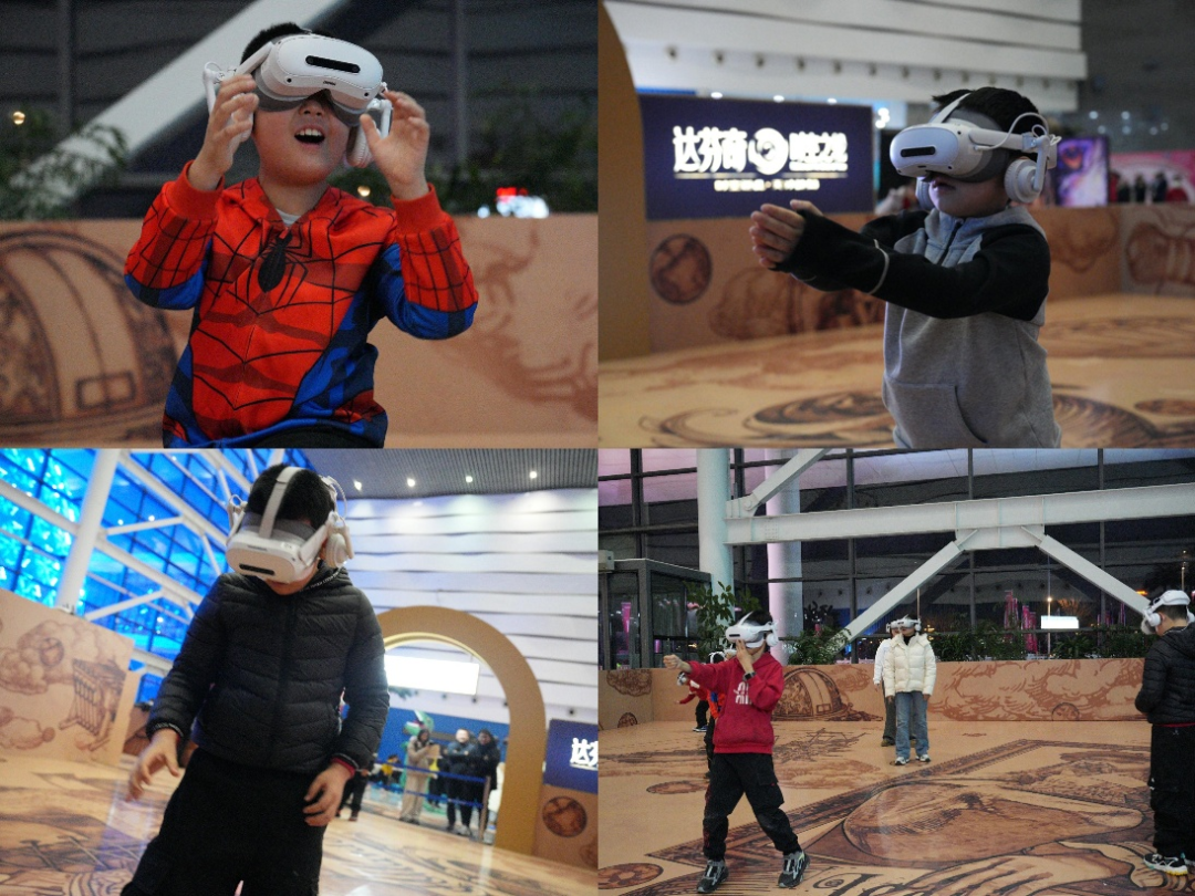 元旦三天,XR體驗區(qū)成為熱門打卡地。在《達芬奇·時空之輪》中,“時空修復師”們?nèi)褙炞⑵平鈾C關(guān);《時空謎局:恐龍危機》里,“特派修復師”們緊張地阻止機械恐龍脫困;《太空奧德賽》中,“追核特工”們投身星際戰(zhàn)爭,思索科技倫理問題。