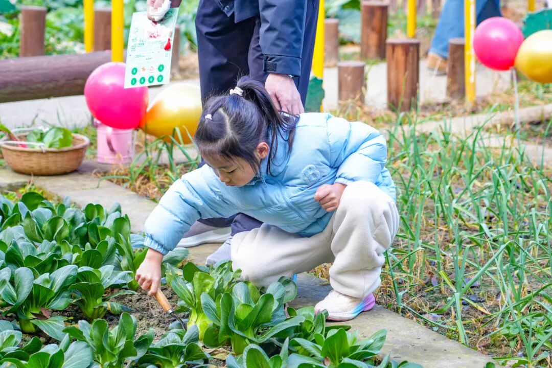 熱身結(jié)束后,親子游戲正式開(kāi)始。在園內(nèi)的叮當(dāng)林里,“叮叮當(dāng)當(dāng)”游戲正在進(jìn)行,家長(zhǎng)和孩子默契配合,清脆的聲響中滿是歡樂(lè)。農(nóng)家樂(lè)菜園里,家長(zhǎng)帶著孩子穿梭在菜田間體驗(yàn)采摘,新鮮蔬菜捧在手里,收獲的喜悅溢于言表。
