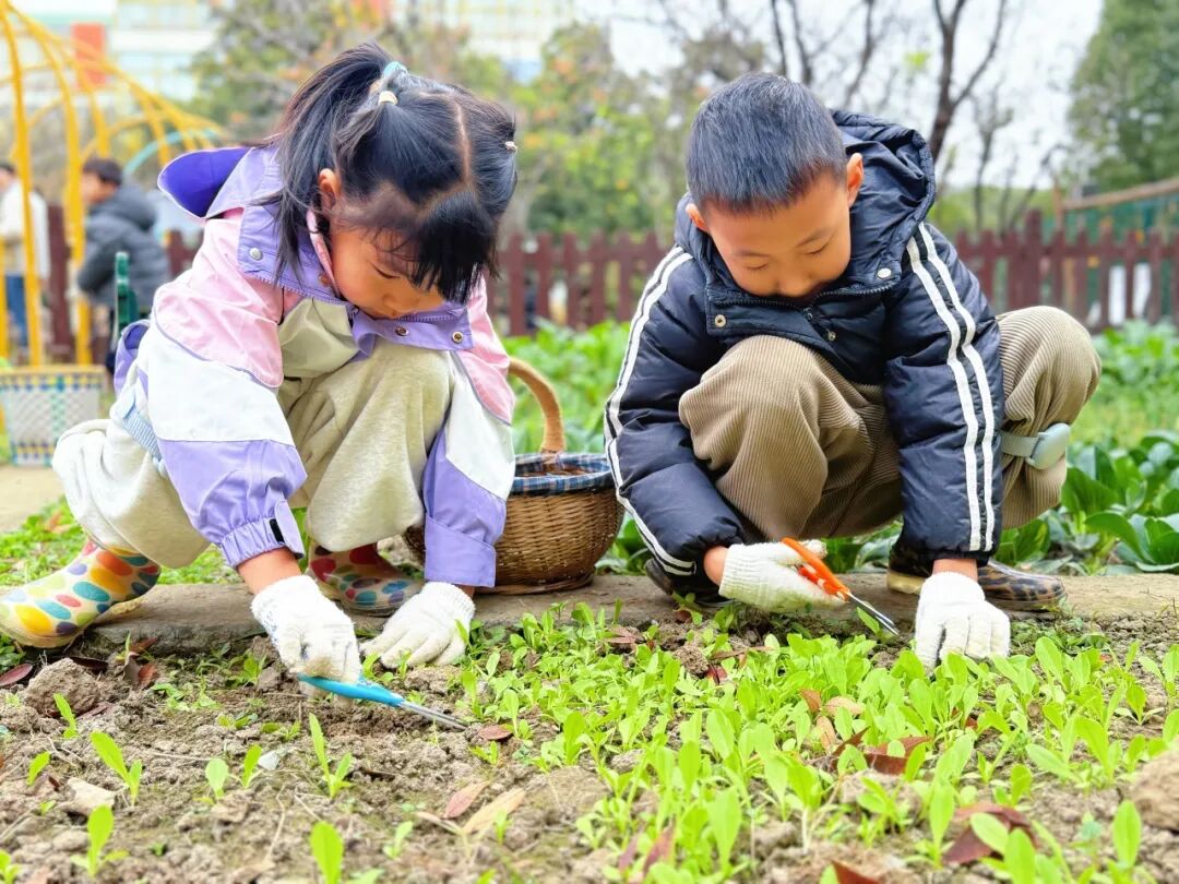 兩園開(kāi)辟了菜園、果園,將小天地變成孩子們探索自然的“活課堂”。這門(mén)以自然為媒介的課程,讓孩子們?cè)诔两襟w驗(yàn)中培養(yǎng)觀察力與探索欲,悄悄種下熱愛(ài)自然的種子。