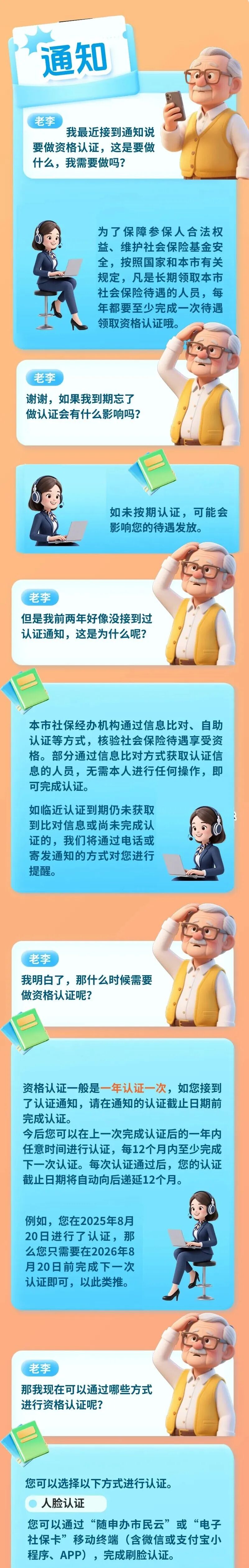 長(zhǎng)期領(lǐng)取本市社保待遇人員需每年完成一次資格認(rèn)證