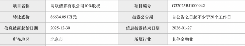 近日,北京產(chǎn)權(quán)交易所官網(wǎng)發(fā)布了網(wǎng)聯(lián)清算有限公司(以下簡稱“網(wǎng)聯(lián)清算公司”)10%股權(quán)的轉(zhuǎn)讓項目信息。