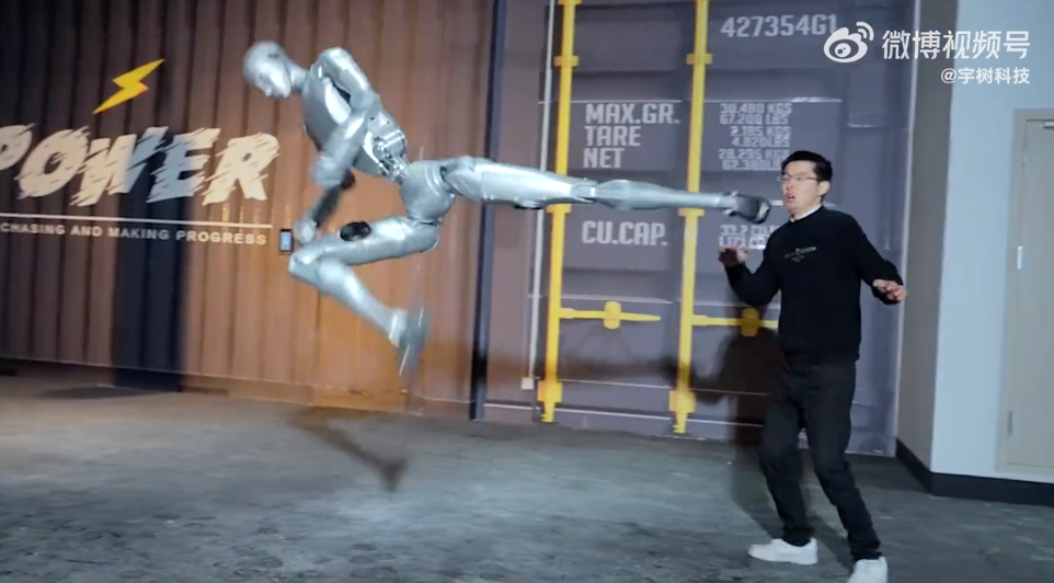 1月4日傍晚,宇樹科技官方視頻號(hào)發(fā)布了宇樹人形機(jī)器人H2的日常訓(xùn)練視頻。視頻里,身高超一米八的H2展示了飛踢、空翻踢腿、踢踹120公斤沙袋等一系列動(dòng)作。